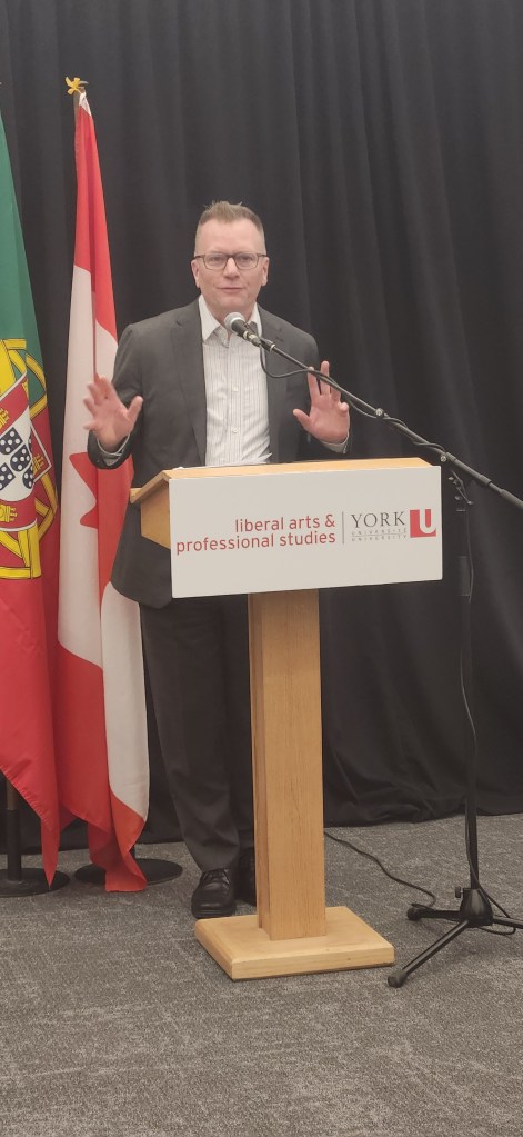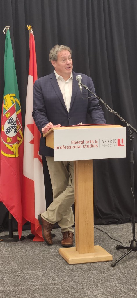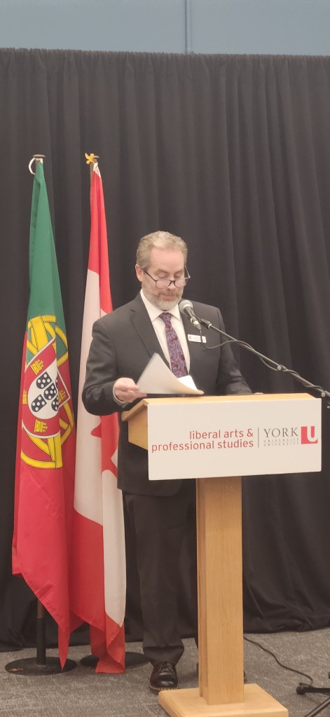 The Dean of the Faculty of Arts & Professional Studies, J.J. McMurtry, and the Dean of Libraries, Joseph Hafner, welcomed the guests to the library. They were followed by interventions from the Secretary of State, the Ambassador, the Consul-General, and the PCHP’s Gilberto Fernandes.