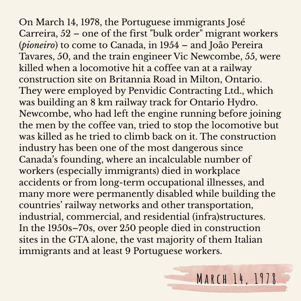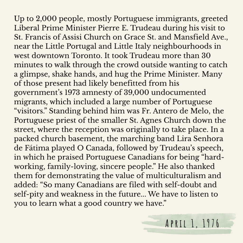 This is our “this day in history” series, featuring slides posted on our Instagram about significant events in Portuguese-Canadian history.